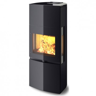 Чугунная печь K1120, черный глянец + бок.стекла + декор стекла (Keddy)