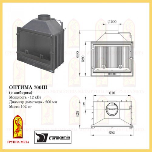 Чугунная топка Мета Eurokamin Оптима 700Ш