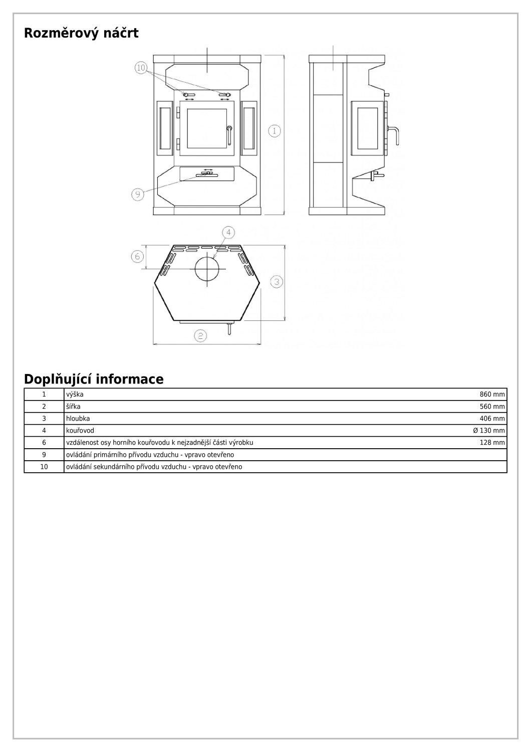 - Диаметр дымохода, (мм) 130