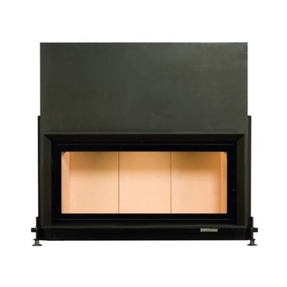 Каминная топка с прямым стеклом. Топочная камера футерована шамотом. Подъёмный механизм двери (система Easy-Lift). Ширина дверки 1010 мм. Высота дверки 458 мм. Возможно подключение воздуха извне.