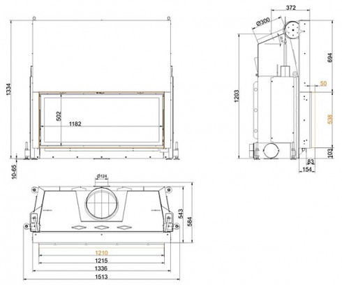 Топка AK 53/121 с подъёмом с одним прямым стеклом.