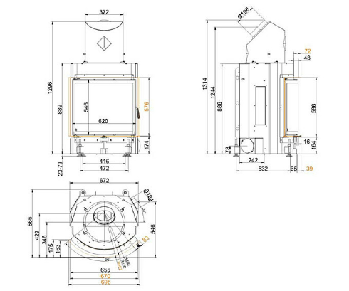 Топка КК 57/67 без подъема с одним полукруглым стеклом
