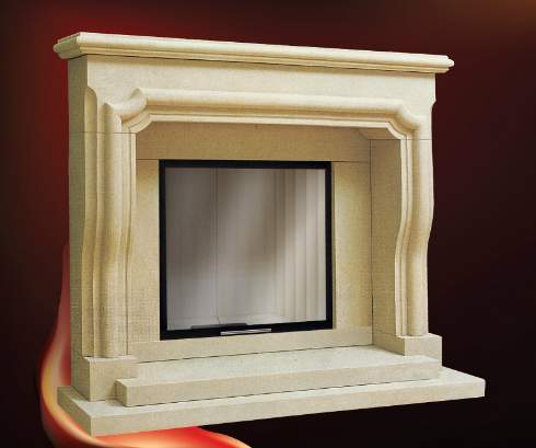 Декоративная облицовка в классическом стиле из натурального камня. Выпуклые элементы декора подчеркнут всю красоту горящего огня в топке.