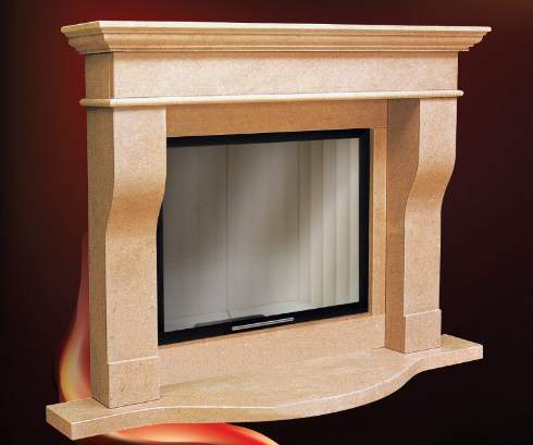 Фронтальная модель из натуральных материалов. Напольная плита полукруглой формы. Такой камин найдет достойное место в доме и будет согревать Вас своим теплом.