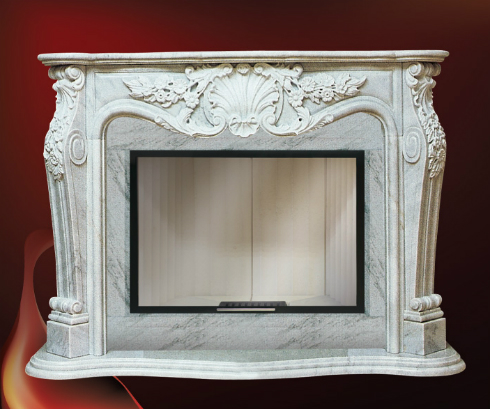 Фронтальная облицовка под дровяную топку с прямым стеклом. Облицовка выолнена в классическом стиле. Данная модель оформлена резными элементами ручной работы.