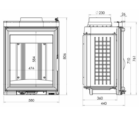 Возможно оснащение теплоконвекционным кожухом, для возможности эффективной разводки тепла (опционально).