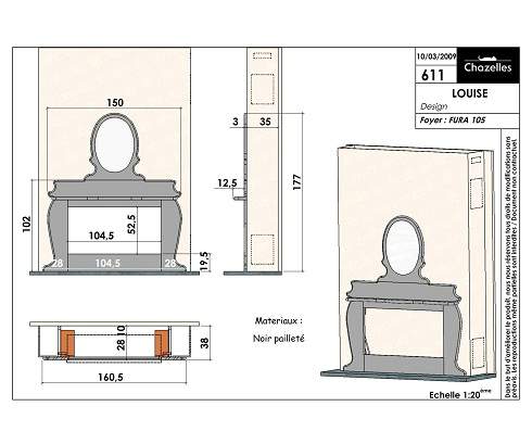 Цена указана за камин в стандартном исполнении (см. чертеж) из указанных материалов без топки. Зеркало в комплекте.