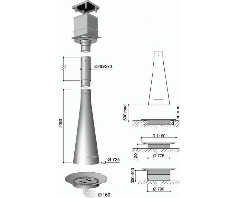 Filiofocus 2000 является телескопической моделью. Кожух и дымоход во всю его длину могут быть опущены к основанию очага, образуя при этом камин с закрытой топкой.