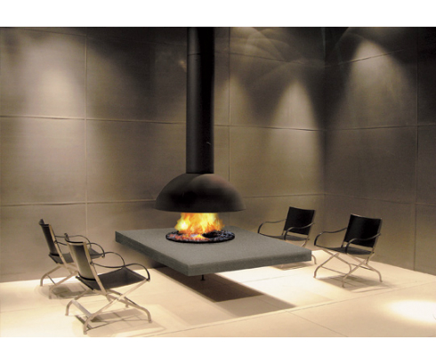 Простота и строгость кожуха Mezzofocus обезоруживают, подкупают. Кожух этого камина может быть установлен над основанием в центре помещения или вмонтирован во многоуровневую основу.