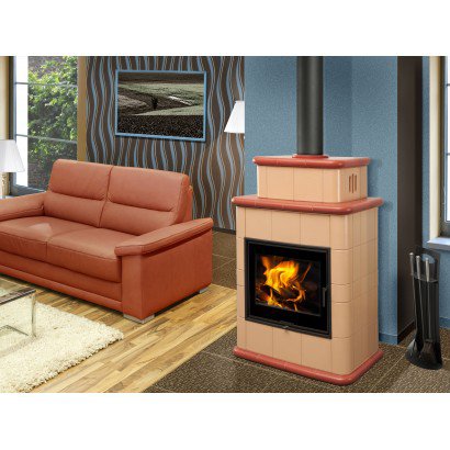 Каминная печь «Baracca» на фотографии имеет керамическую облицовку.