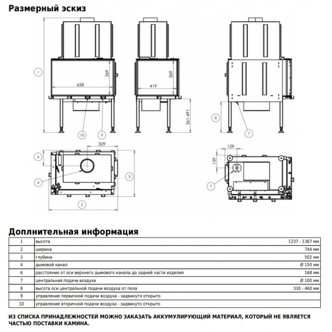 • Топка подключается к воздуховоду диаметром 100 мм.