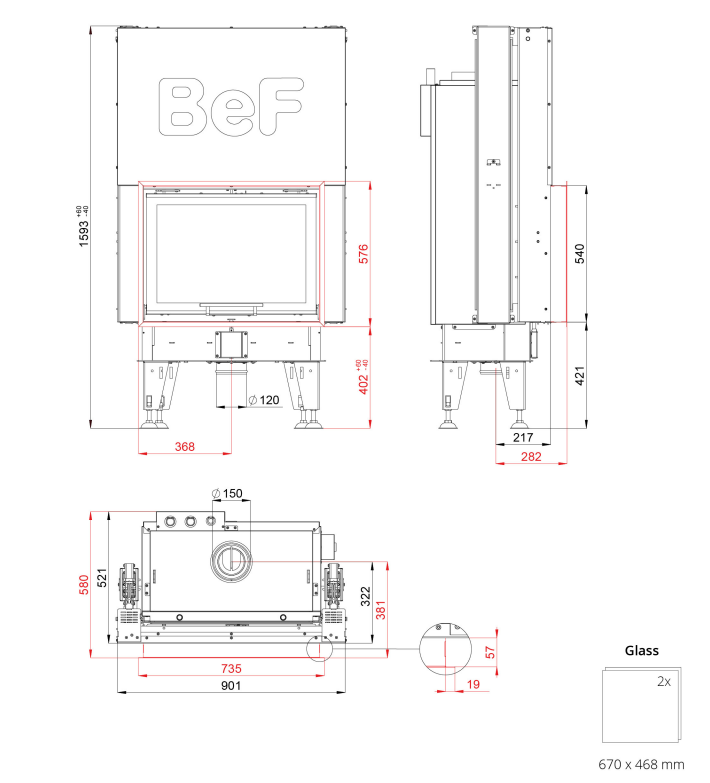 • Точная обработка регулирующего воздуха обеспечивает плавную и точную регулировку каминной топки.
