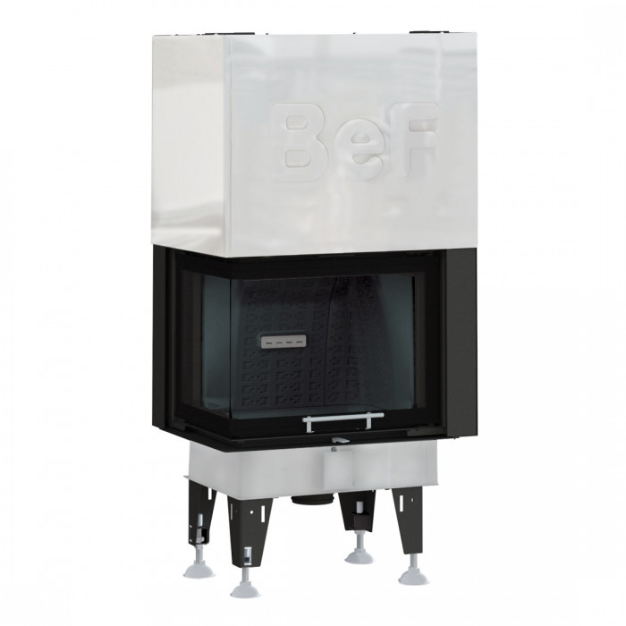Угловая каминная топка BeF Royal V 8 CL с Г-образной формой дверцы и подъемом – это европейская современная модель предназначенная для работы на сухих дровах лиственных пород дерева или брикетах.