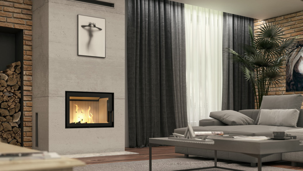 Топка оборудована закаленным стеклом, стойким к высоким температурам (до 800 °С). Вставка изготовлена из высококачественной стали, имеет энергоэффективность ― класс A и отапливает помещения площадью 45-145 м². Модель дополняется стальной декоративной рамкой, которая приобретается отдельно.