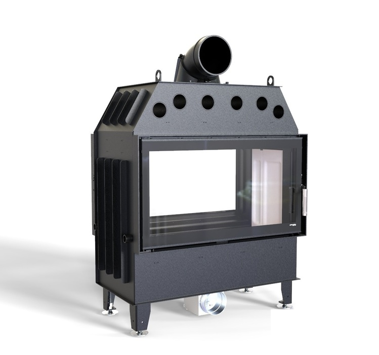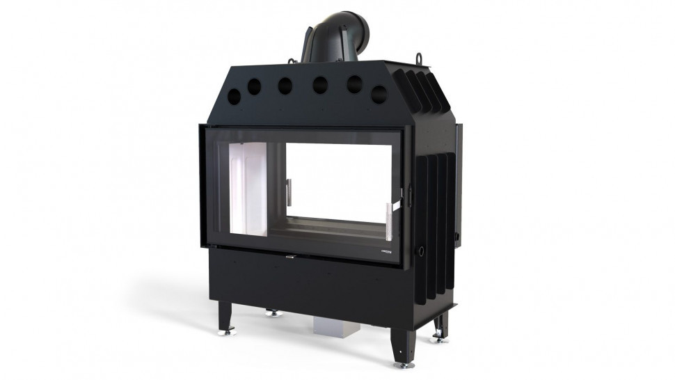 Изготовлена из высококачественной стали и предназначена для отопления помещения площадью 70-230 м². Модель имеет 2 дверцы из закаленного стекла, что выдерживает температуру до 800 °С. Благодаря такой конструкции, открывается вид пламени с обох сторон и камин возможно установить в межкомнатных перегородках и наслаждаться видом огня даже в разных комнатах. Дверцы имеют по ручке из качественной нержавеющей стали.