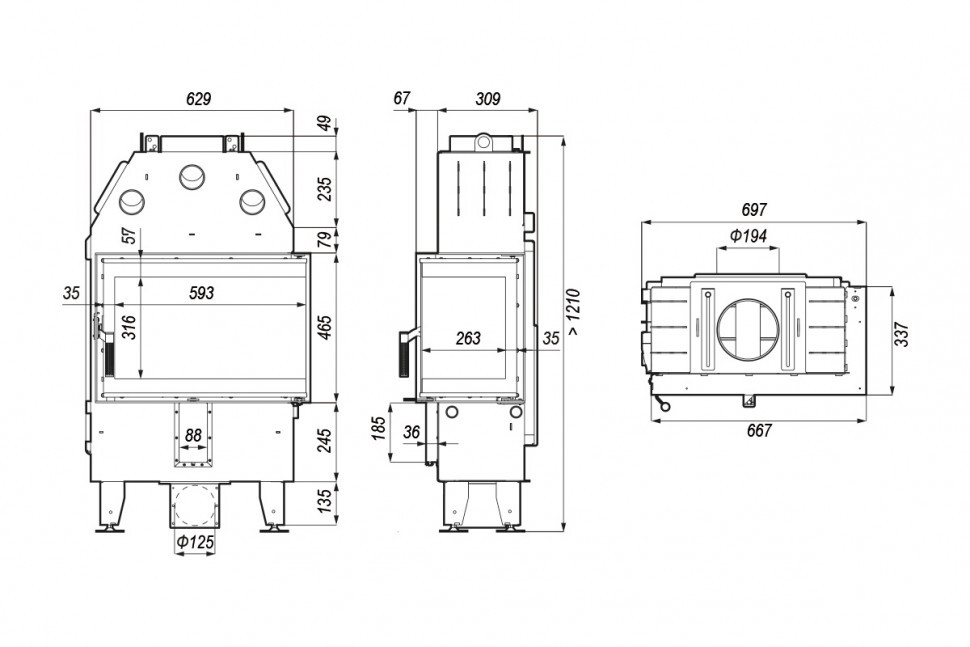 Изготовлена из стали с порошковым покрытием и имеет эффективность нагрева 78 %. Устройство с центральной подачей воздуха снаружи и возможностью ее регулировки. Специальная конструкция на трубе для подачи воздуха в топку, дает возможность изменить направление подачи воздуха на боковое. Плотно размещенные радиаторы способствуют передачи больше тепла окружающей среде, а воздуховоды повышают эффективность камина.