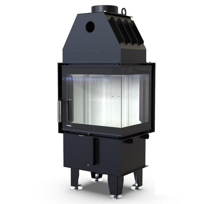 Стальной корпус покрыт качественным лакокрасочным покрытием, даже при первой растопке, пользователь не ощутит неприятного запаха. Внутри топка защищена белыми панелями Keramiton, специального керамического сплава. Г-образная дверца имеет боковое открытие, оснащена составным стеклом с трафаретной печатью и ручкой с перфорированной структурой для естественного охлаждения.