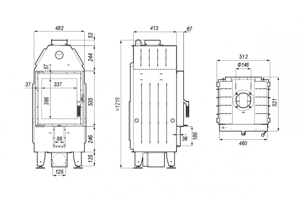 - Диаметр дымохода, (мм) 150