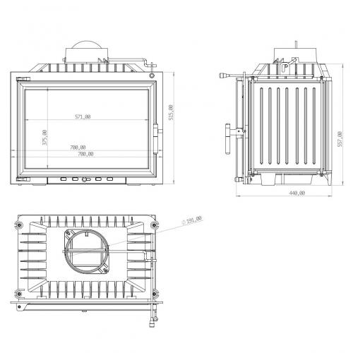 Каминная топка Echa-Tech Font/700 предназначена для обогрева пространства в 140-150 квадратных метров. Подходит для встраивания и имеет верхнее подключение к дымоходу.