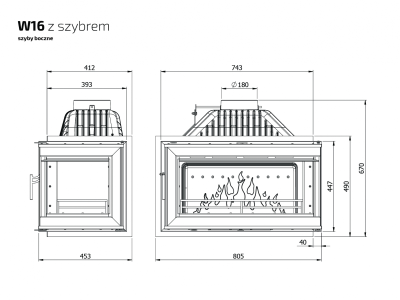 Каминная топка Kaw-Met W16 pb/lb (право- или левосторонняя)