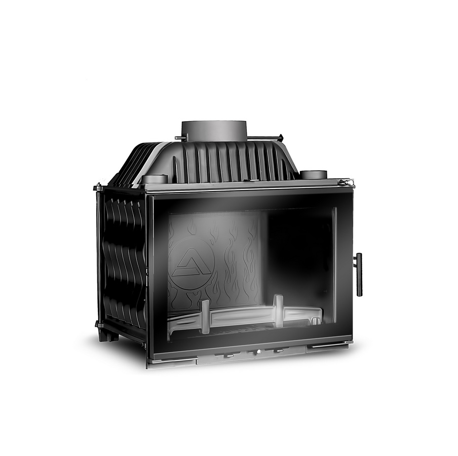 Для защиты корпуса каминной топки в конструкции топочной камеры также установлена двойная задняя стенка с красивым и объёмным рисунком, которая обеспечивает долговечность каминных топок KAWMET.
