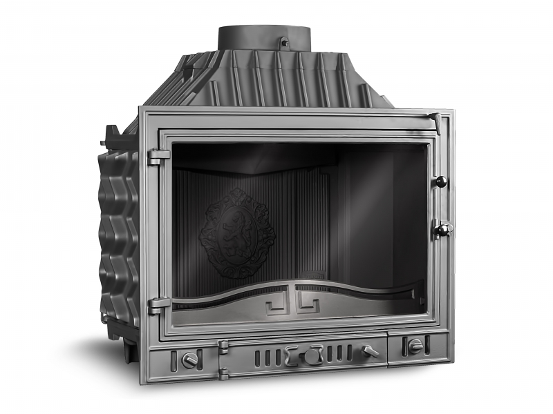 Классическая каминная топка W4 14,5 кВт это аналог топки W3 с уменьшенной мощностью, используется для отопления помещений как качественный дизайнерский отопительный прибор, а также как предмет интерьера. Жаростойкая плита в задней части топки декорирована гербом со львом.