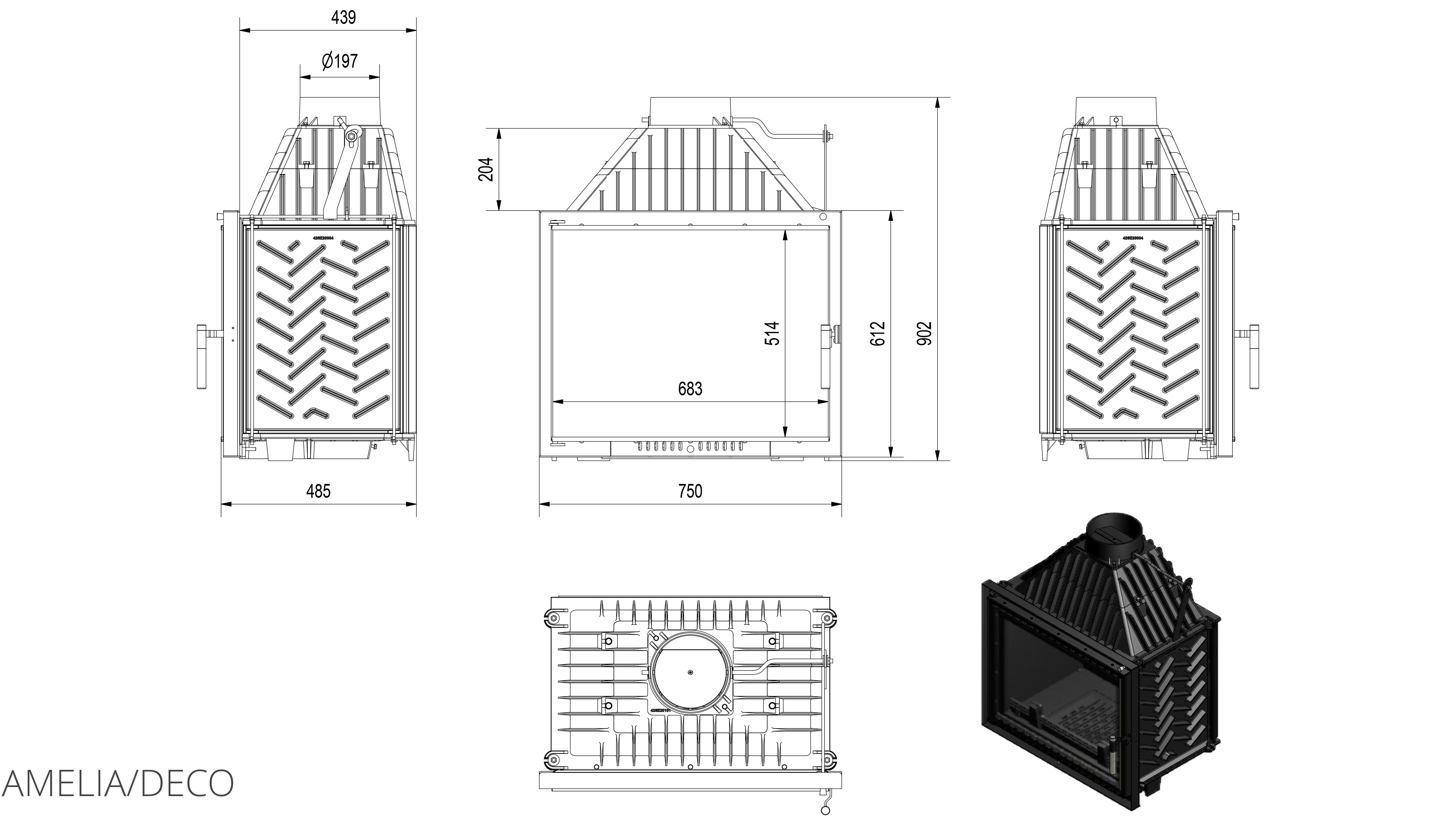 Каминная топка Kratki Amelia/DECO – топочная камера или топка-вкладыш, предназначенная для отопления дома площадью до 250 кв.м. Благодаря новому обрамлению топка-вкладыш DECO имеет современный вид, а узкое обрамление стекла создает иллюзию отсутствия рамки, предоставляя потребителя максимальный обзор.
