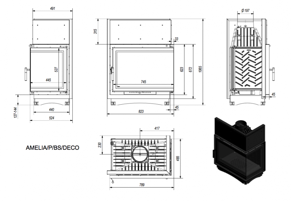 Каминная топка Kratki Amelia/P/BS/DECO