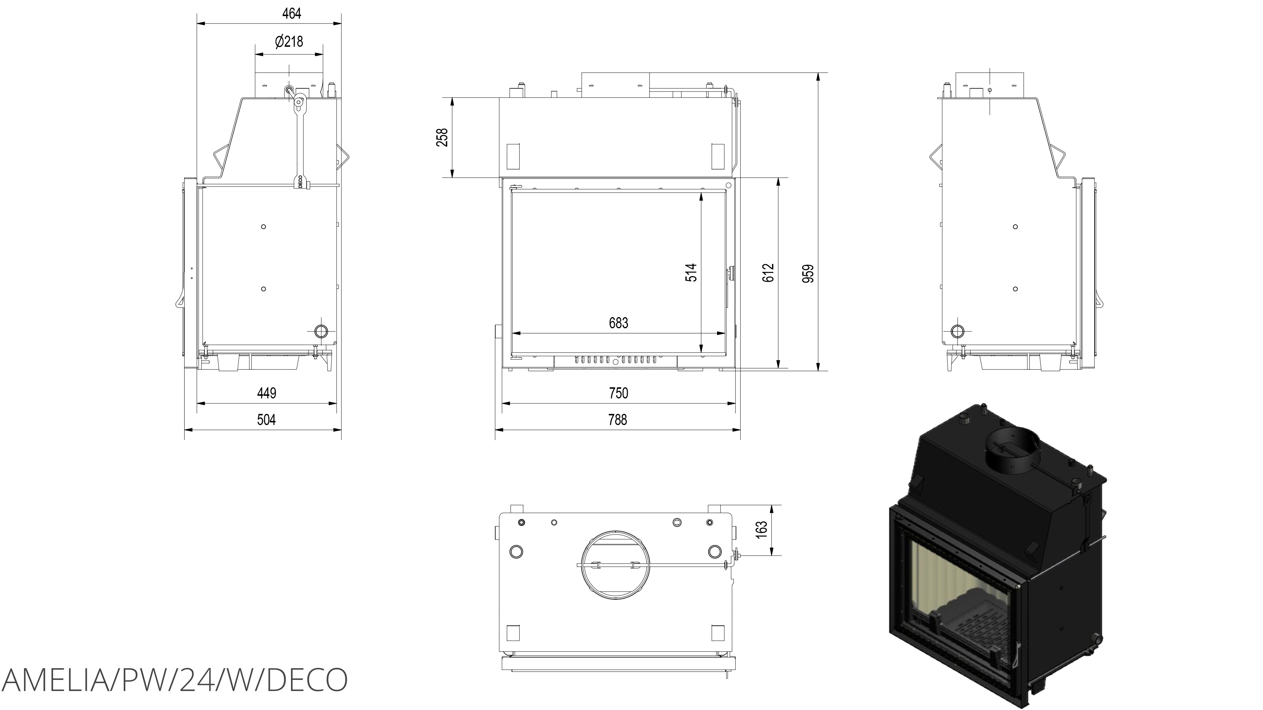 Каминная топка с водяным контуром Kratki Amelia/PW/24/W/DECO (змеевик) приспособлена для интенсивного сгорания, где применены технологии и материалы создают удобную, экономичную и экологическую топку с высокой эффективностю.
