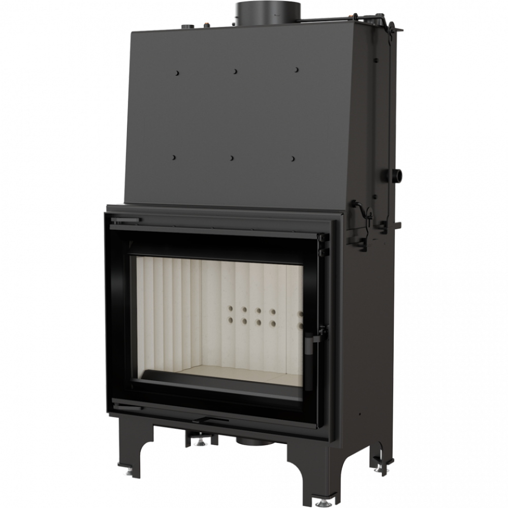 - Топка Aquario - это устройство с водяным контуром, который имеет встроенный корпус из двойных, стальных стен. Пространство между ними заполняется водой, которая получает тепло и передает его радиаторной установке. Камин характеризуется эффективным сжиганием и длительным поддержанием температуры благодаря облицовке камеры сгорания TERMOTEC - материалом, который накапливает тепло, и повышает температуру камеры сгорания. Увеличена поверхность теплообмена в топке возникает в связи с встроенным и высоким переходом из камина в дымоход. Более экологическое сгорание благодаря системе двух дефлекторов, употребление которых продлевает время прохождения дымовых газов.