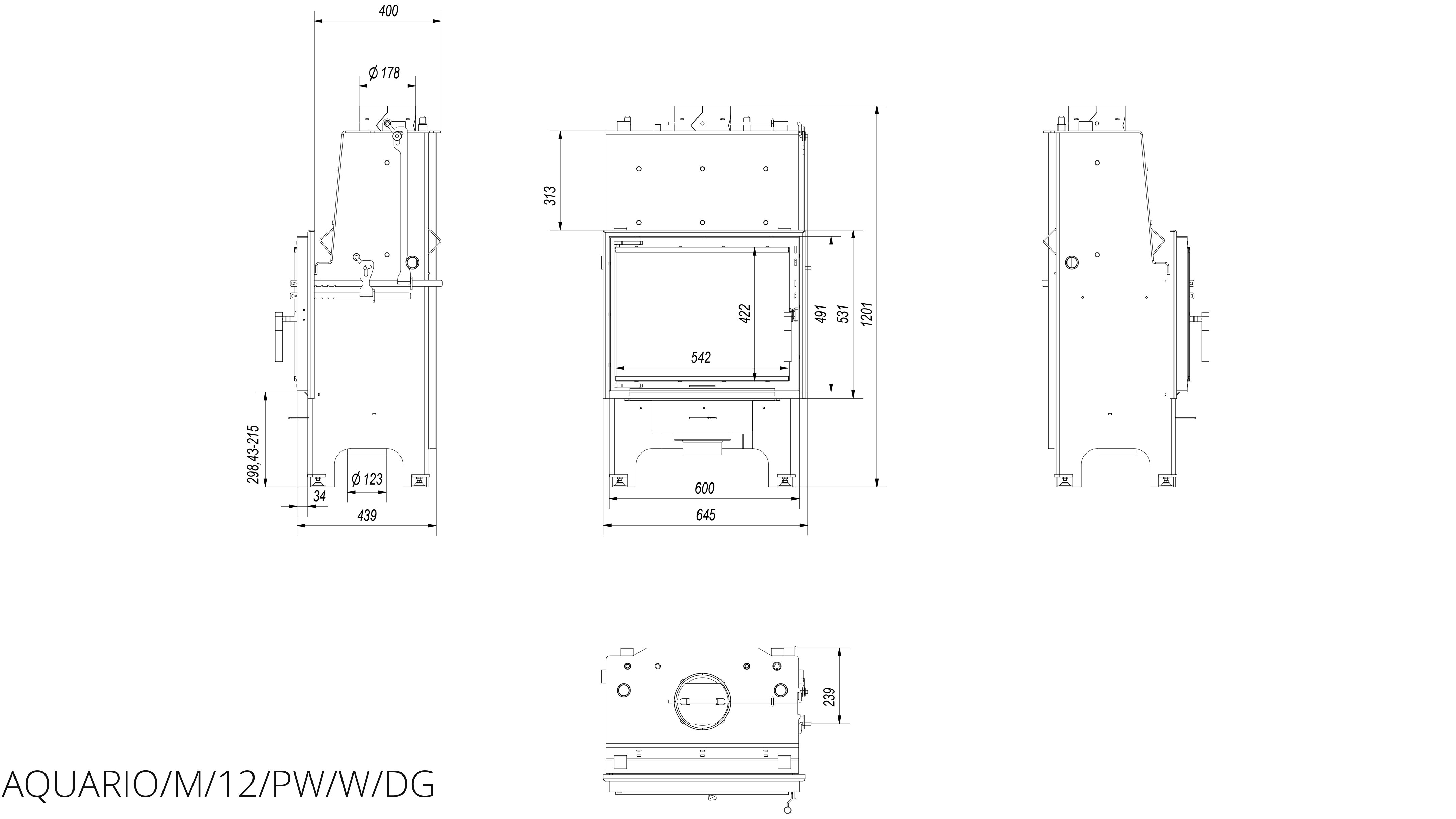 Каминная топка Kratki Aquario/M/12/PW/W/DG