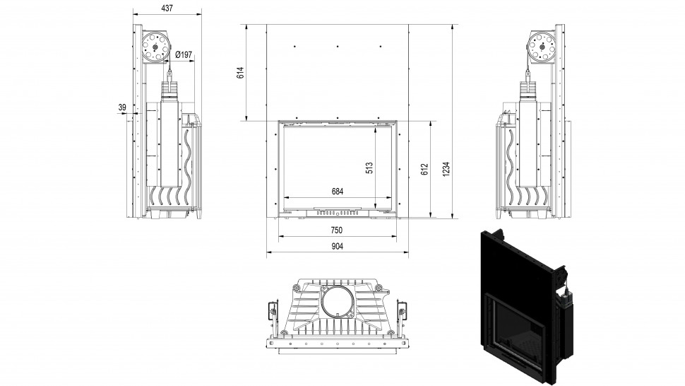 - Имеет встроенную шиберную заслонку, дефлектор, а также ящик для золы.