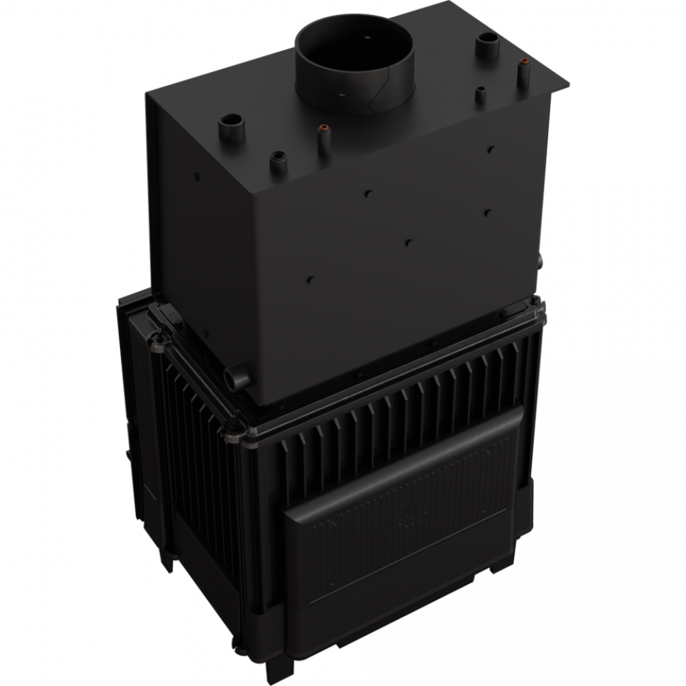 - Топка оборудована с внешней стороны плотно расположенными радиаторами. Благодаря применению такого решения поверхность теплоотдачи окружению есть значительно больше, и одновременно увеличивается масса камина.