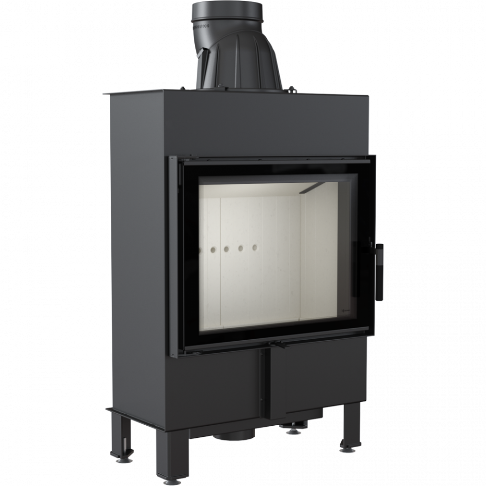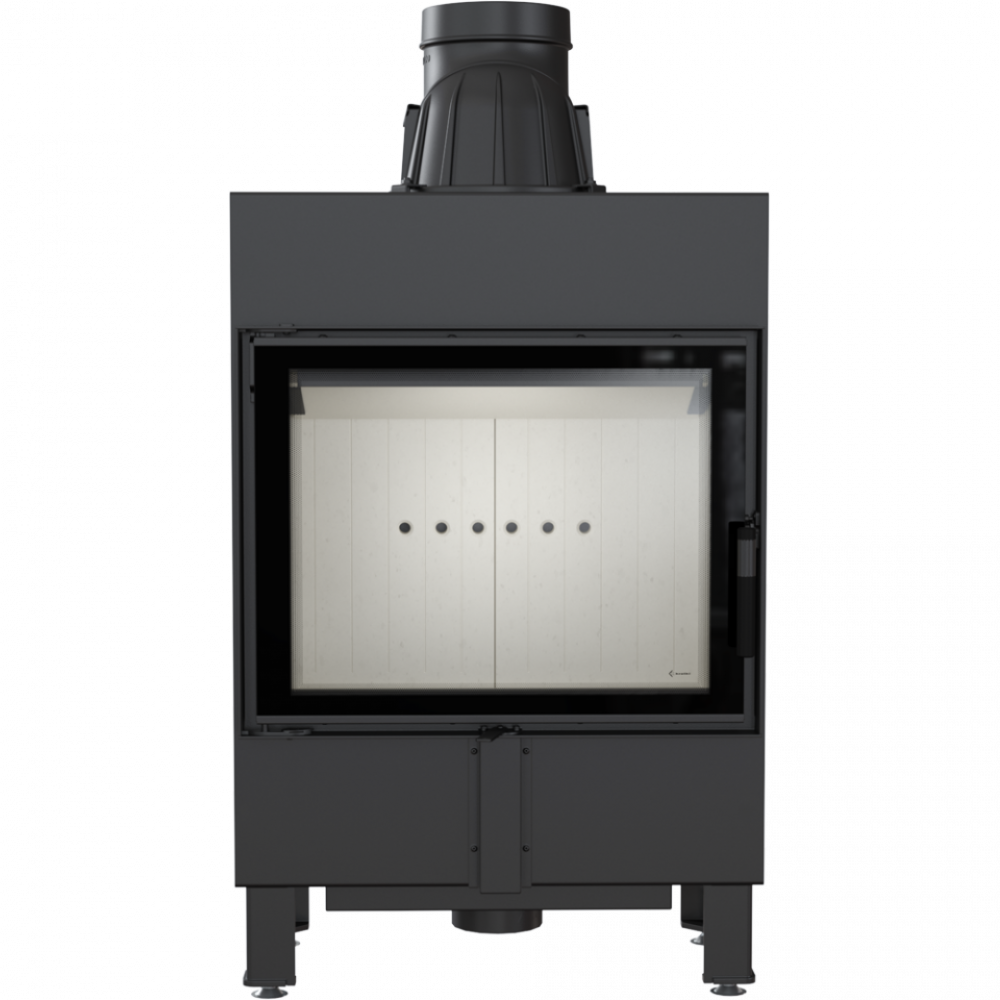 - Модель оснащена подвижным дымоходным отверстием, так что во время монтажа нет необходимости покупать дополнительные колена. Можно легко подобрать угол подключения топки к каминной инсталляции.