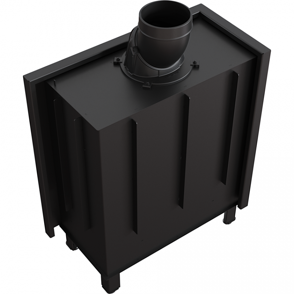 • Кроме того, для топки используется система чистого стекла (воздушная завеса), то есть воздух подается прямо на стекло через систему каналов, расположенных по бокам камина. Таким образом, кислород поступает в верхнюю часть камеры сгорания, где происходит сгорание газов, возникших в процессе сжигания дров, что дополнительно уменьшает выброс вредного СО в атмосферу.