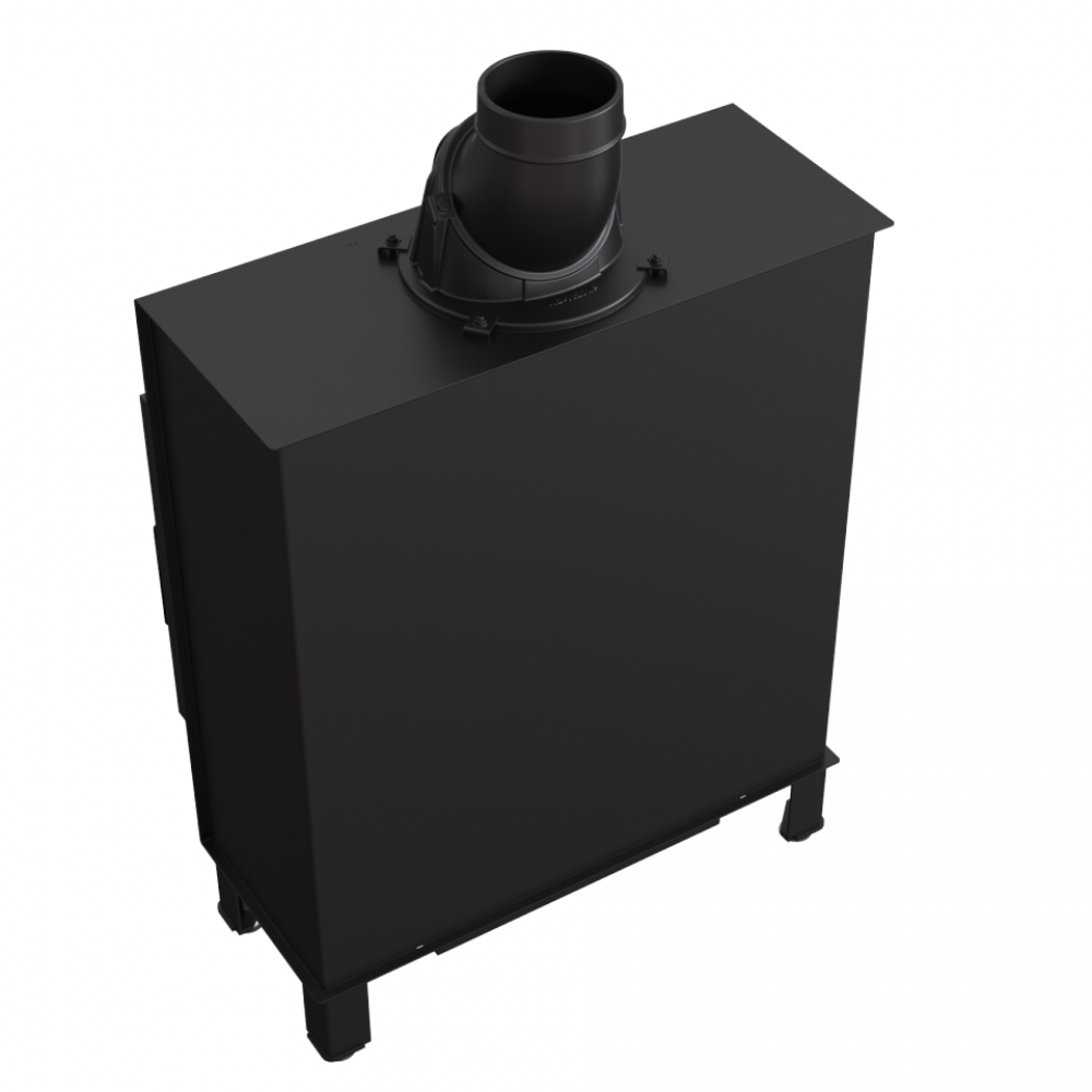 - Модель оснащена подвижным дымоходным отверстием, так что во время монтажа нет необходимости покупать дополнительные колена. Можно легко подобрать угол подключения топки к каминной инсталляции.