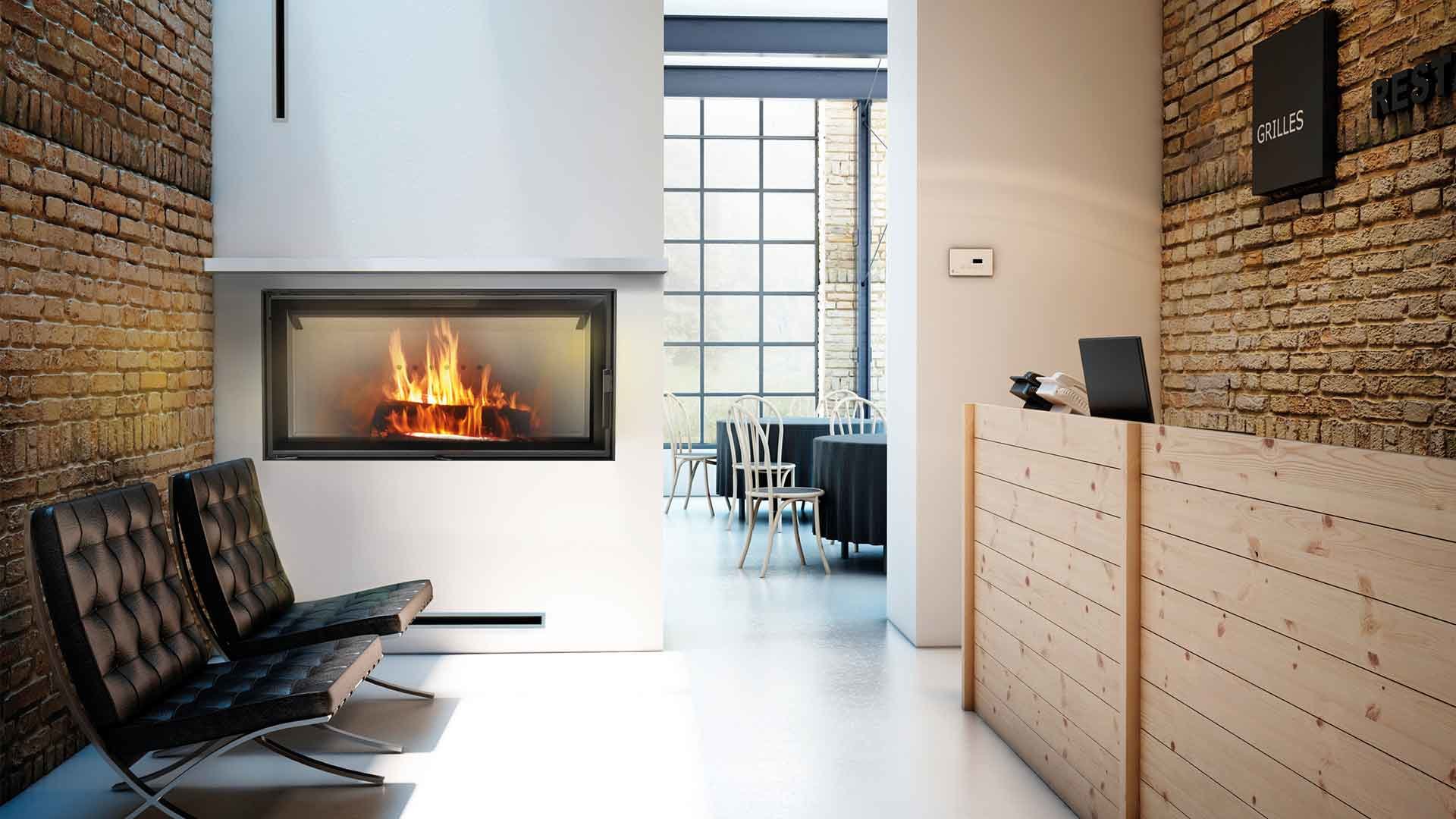 - Декоративная стеклянная панель типа glass, которая выдерживает температуру до 660 °C и предоставляет камину современного и элегантного вида, оптически увеличивает переднюю часть топки.