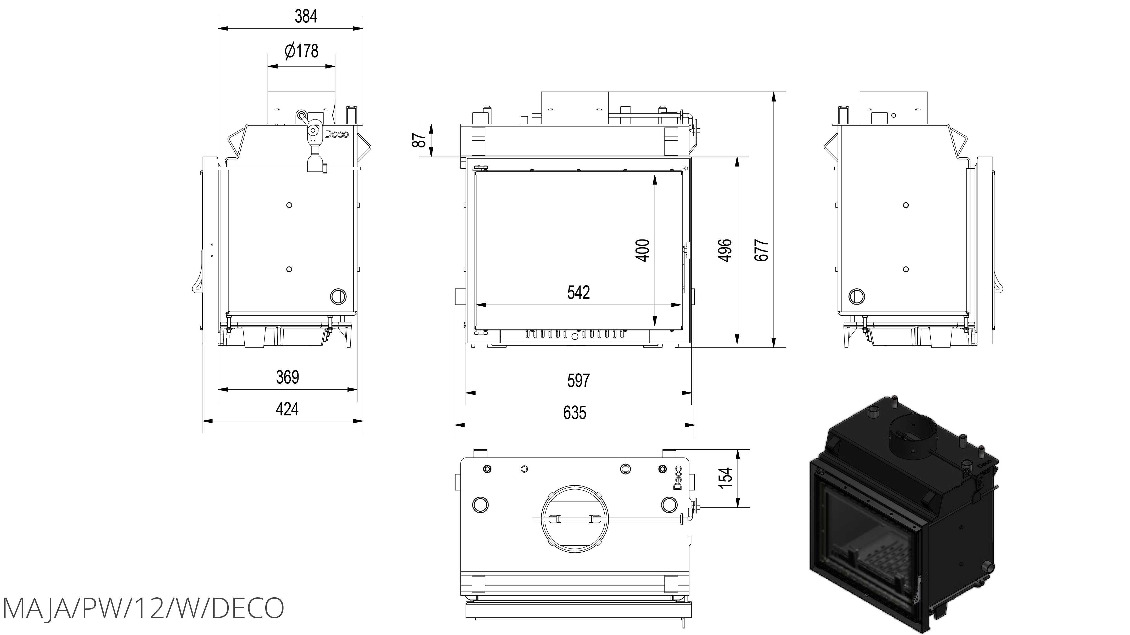 Каминная топка Kratki Maja/PW/12/W/Deco