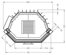 - Материал топки: чугун (класс 200), толщина стенки 8 мм и сталь толщиной 4 мм;