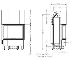 Каминная топка Kratki Maja Wieza – это чугунная топка вертикального типа, ширина её стекла составляет всего 470 мм, поэтому такую топку можно разместить в ограниченном пространстве, например, в угловом камине.