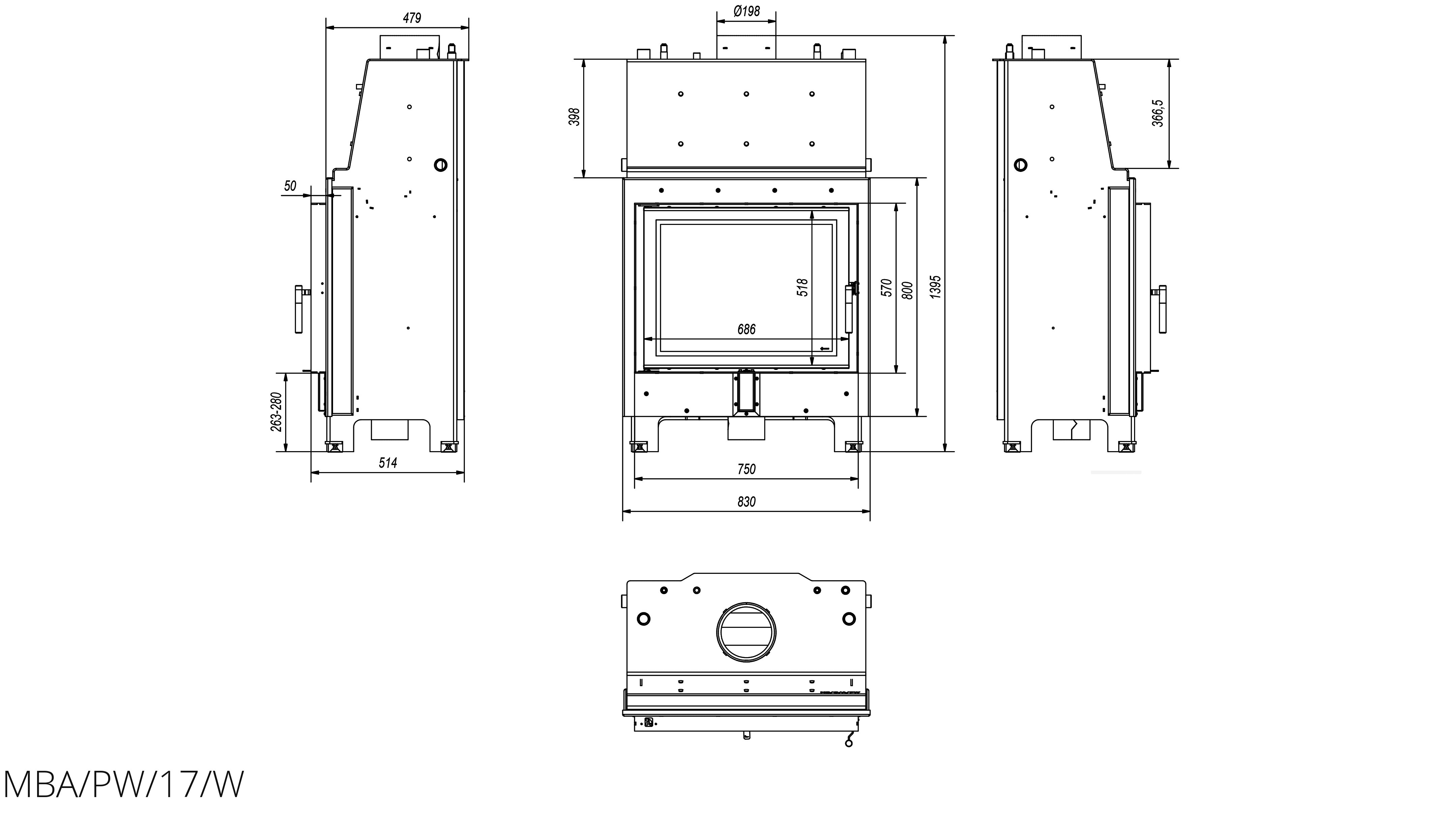 Каминная топка Kratki MBA/PW/17/W