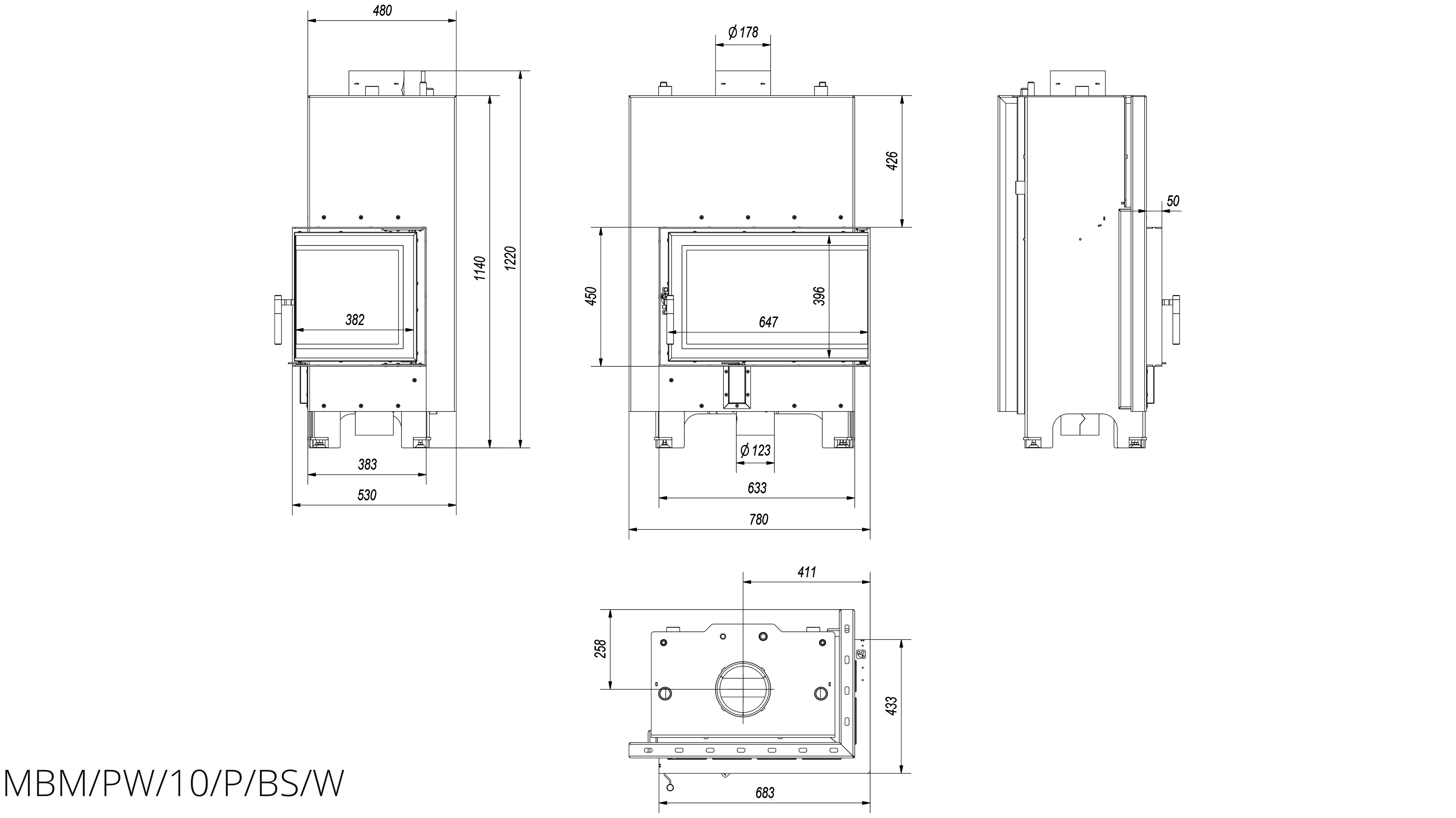 Каминная топка Kratki MBM/PW/10/P/BS/W