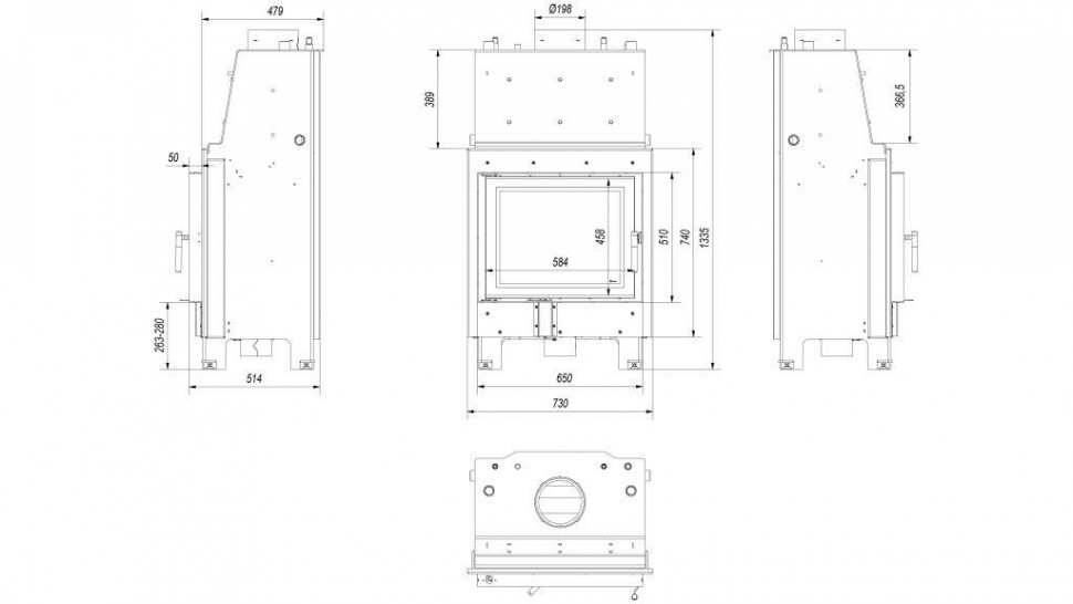 - Удобная скрытая ручка на дверце топки