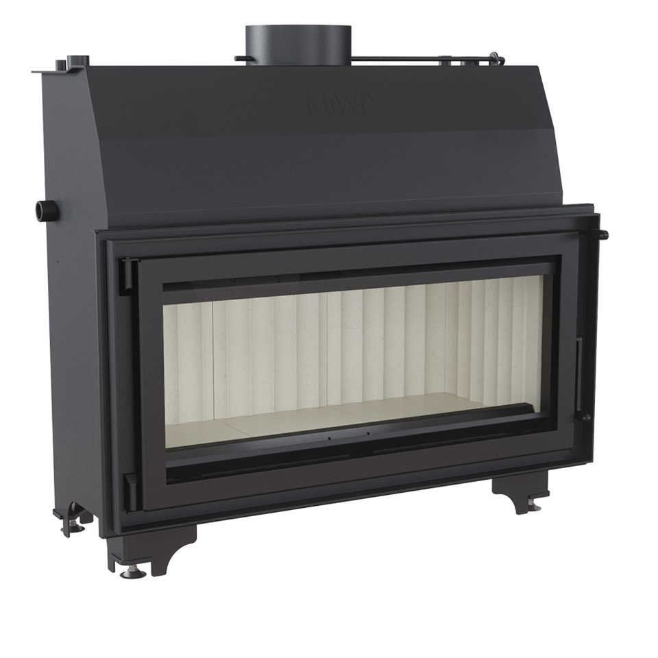 Каминная топка Kratki Mila/PW/24/W с водяным контуром — встраиваемая топочная камера, выполненная из котельной стали. Высокопроизводительная топка с футеровкой керамическим материалом и встроенным теплообменником. В отличие от большинства очагов имеющих прямоугольные дверцы, данная модель относиться к широкоформатным топкам горизонтального типа, и может работать на длинных поленьях (до 700 мм).