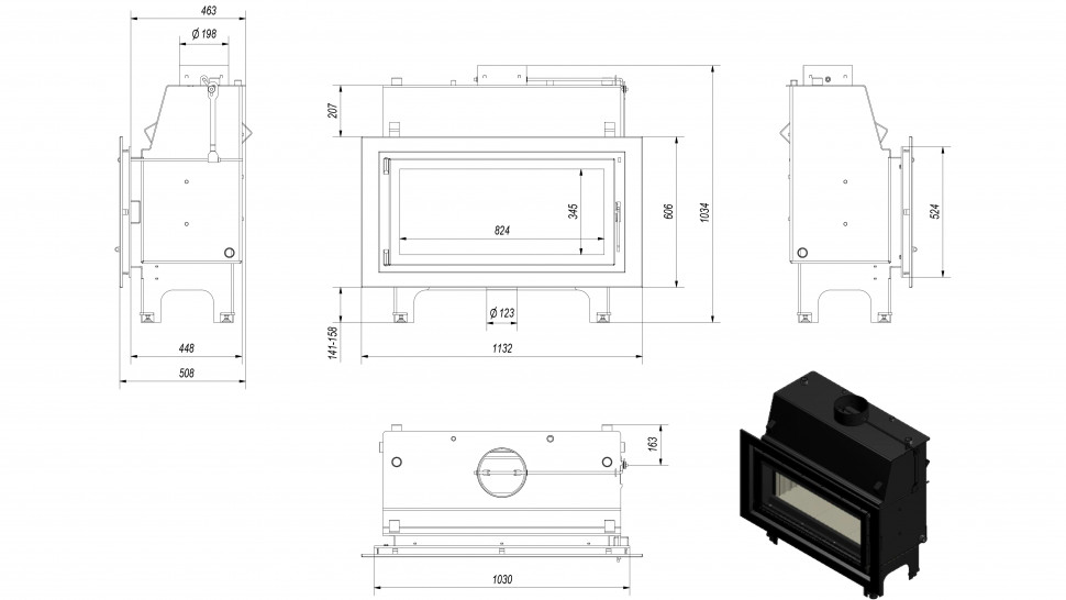 - Габаритные размеры ШxГxВ, (мм): 1132x508x606