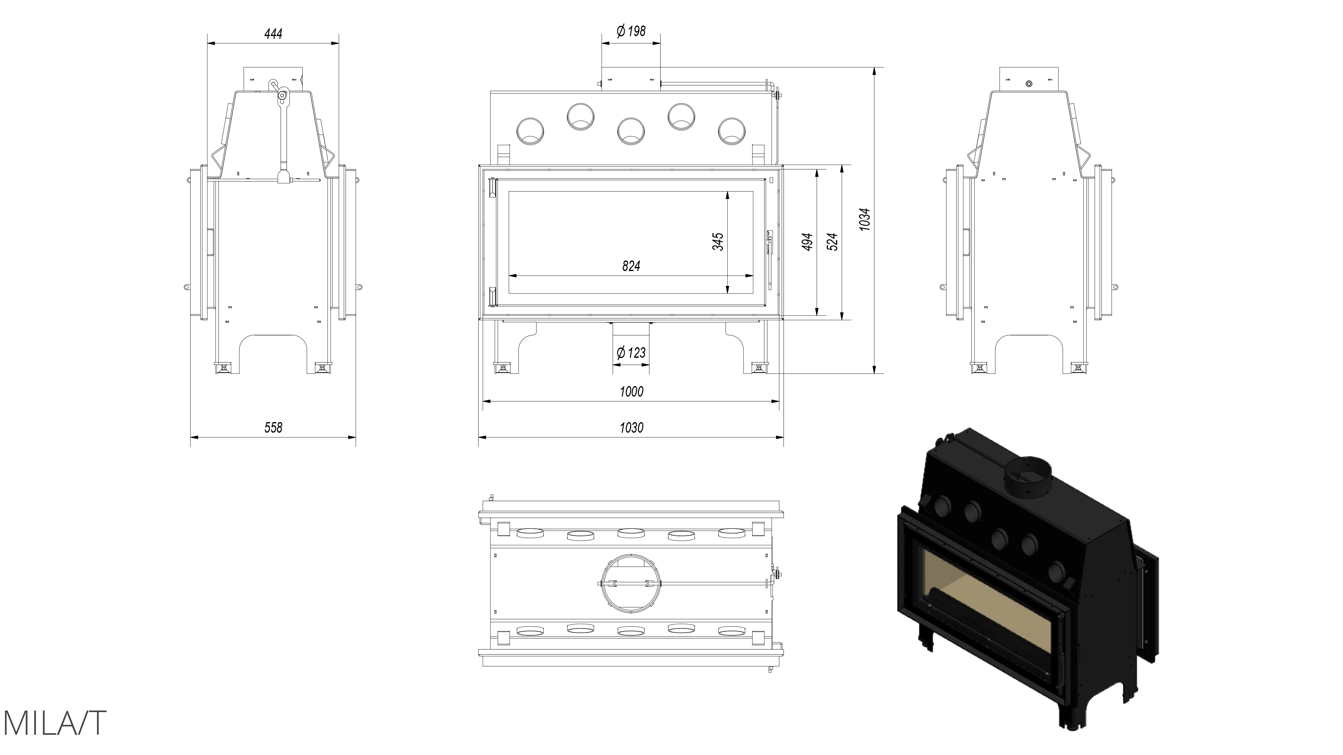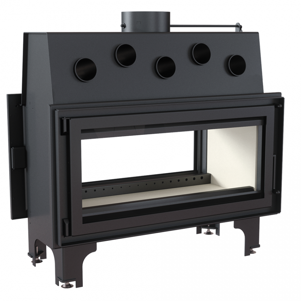 Дровяная сквозная каминная топка Kratki Mila/T (тоннель) для загородного дома. Топка с современной панорамной передней стороной и большим созерцанием огня. Создана из котловой стали с толщиной стенок 4 мм. Топочная камера обложена негорючим материалом - вермикулитом. Стекла на дверцах термостойкие и выдерживают температуру до 800оС.