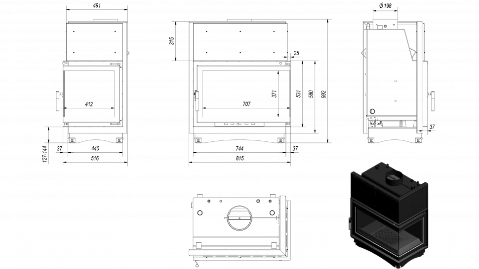 - Увеличена поверхность теплообмена благодаря встроенным водяным дефлекторам и высокому переходу камина в дымоход.