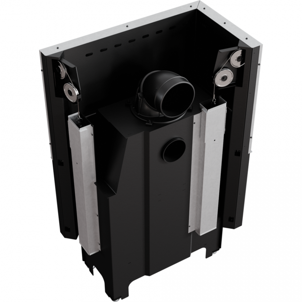 • Система внутреннего контроля дает возможность вести сервисные работы изнутри камеры сгорания без необходимости уничтожения застройки камина.