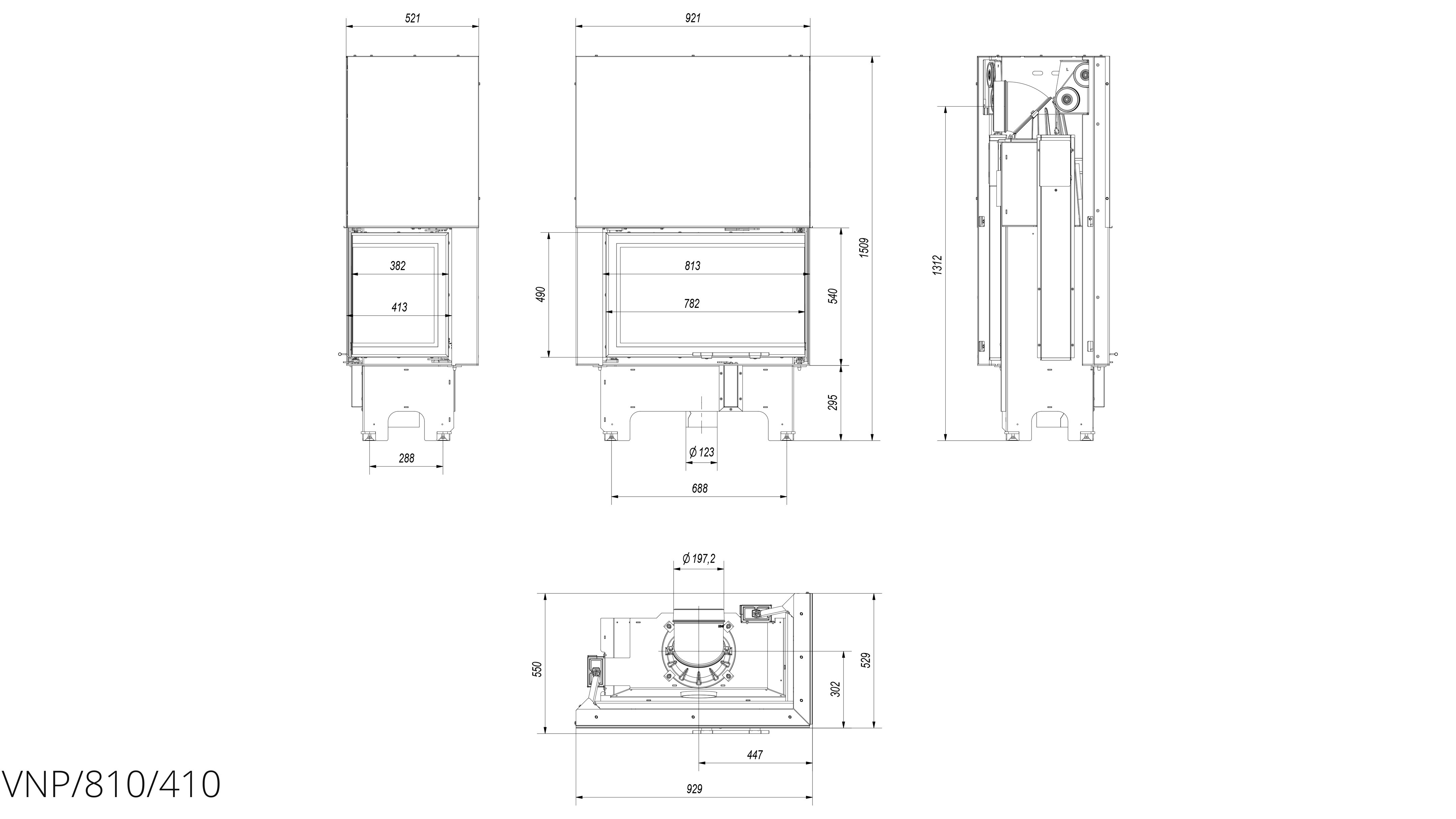 Современная каминная топка Kratki VNP/810/410 (Г-образное стекло справа, гильотина) в варианте с дверцами, что поднимаются вверх (гильотина - система подъема) с боковым стеклом без рамы сочетает уникальную эстетику и исключительные функциональные свойства. Вне визуальных качеств, устройство гарантирует исправное отопления помещений и экологическое сжигание древесины.