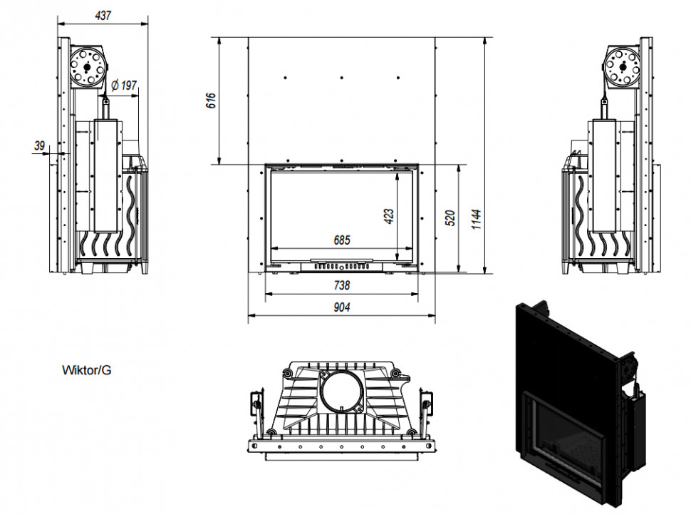 Wiktor/G (гильотина) – серия чугунных топок от Kratki мощностью 14 кВт. Топка с уникальной конструкцией дверного механизма, позволяющего поднимать дверцу вертикально вверх. Камин с топочной камерой Wiktor/G – это возможность совестить преимущества открытого и закрытого каминов.